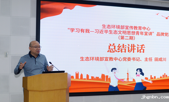 田成川在总结讲话中指出,谋划开展“学习有我——习近平生态文明思想青年宣讲”品牌党建活动的本意就是希望通过这一平台,把党建与宣教业务工作深度融合,把青年人的灵动性、积极性、领悟力和创造力充分调动起来,培养一支优秀的习近平生态文明思想青年宣讲队伍。第二期宣讲活动在主题教育中开展,很有意义,相较第一期,从内容形式上都丰富了、提升了;希望青年们继续努力,在活动中不断锻炼自己的才能;宣教中心青年理论小组也要持续总结提升,争取把品牌党建活动办得更有影响力和感召力,积极为宣教中心的文化建设贡献青年力量。活动最后,田成川以“不畏浮云遮望眼”“万紫千红总是春”寄语青年,希望中心青年们勇立潮头,乘风破浪,在生态环境宣传教育工作中开创美好未来。