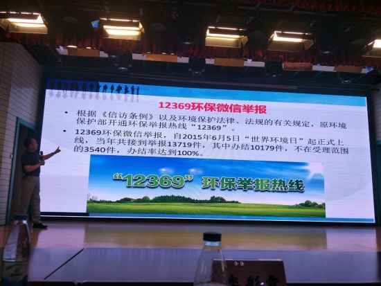 生态环境部宣传教育中心《世界环境》编辑部主任栾彩霞就如何使用12369环保微信举报监督身边的环境污染问题进行了专门培训讲解,希望同学们关注生态环境保护,参与环保监督举报,让12369成为助力打赢环保攻坚战的有力武器。
