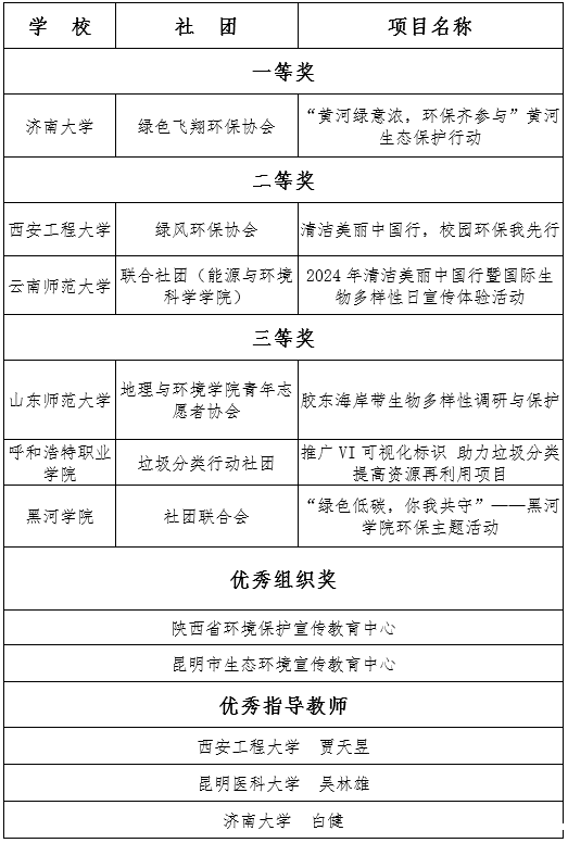 2024“清洁美丽中国行”全国高校小额资助项目获奖名单
